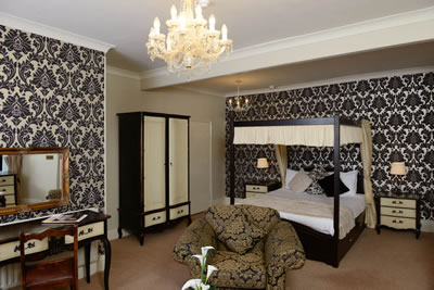 Offering a slice of traditional opulence, our de-luxe 4 poster suite is the perfect setting for a romantic weekend in this picturesque location. The four-poster bed offers the ultimate sleeping experience, and you’ll love to unwind in the cosy lounge area, where you can relax in front of the flat-screen TV in the beautiful flocked two-piece suite.